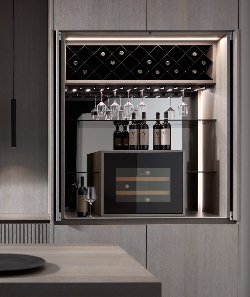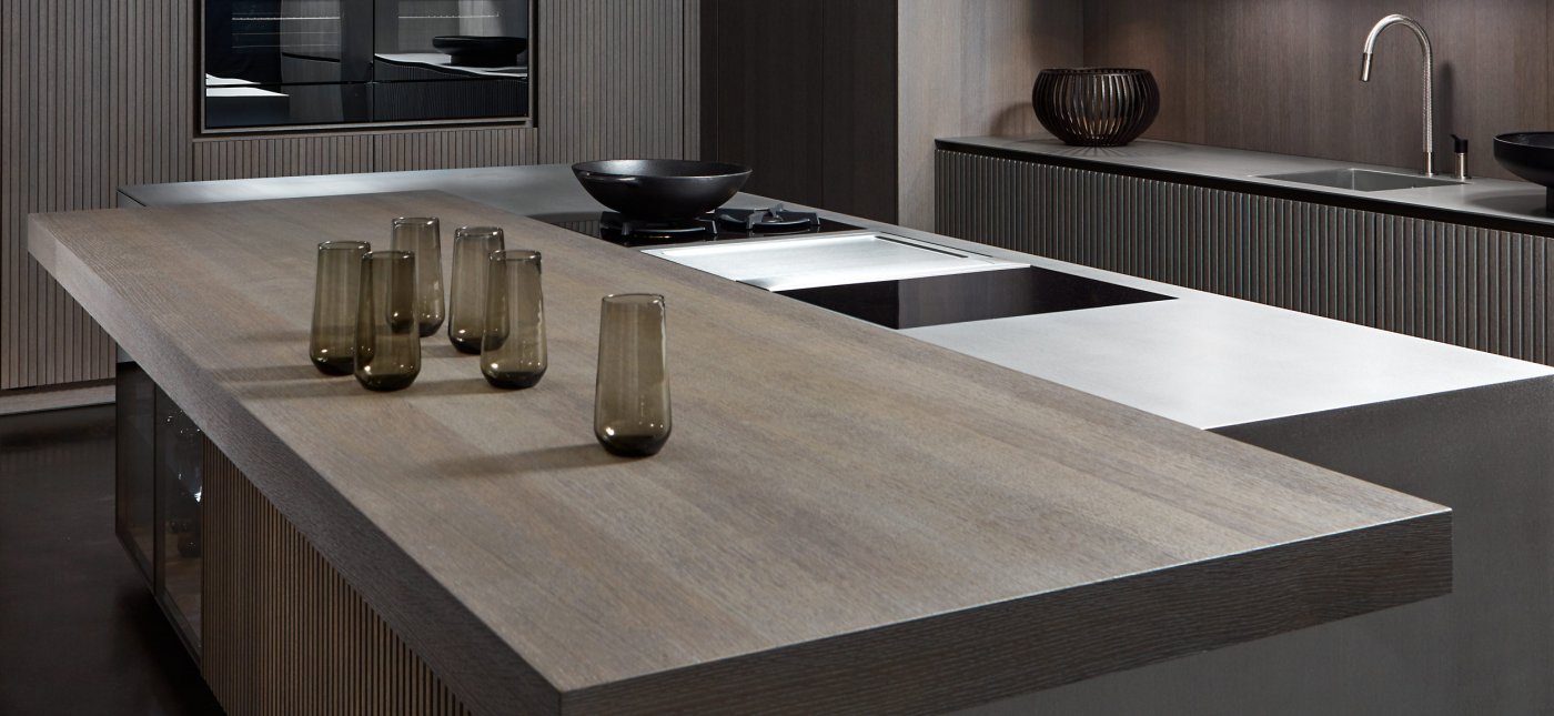 Fronten, Thekenplatte und Schränke Silbereiche geölt