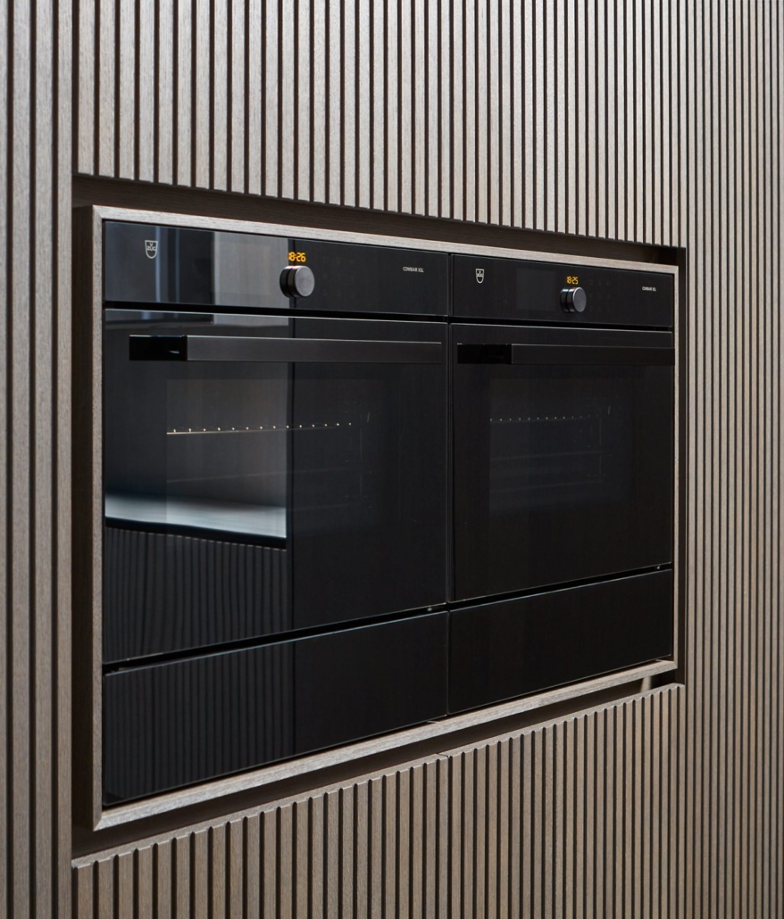 Exakt auf Maß gearbeitete Lamellen-Struktur in Silbereiche geölt