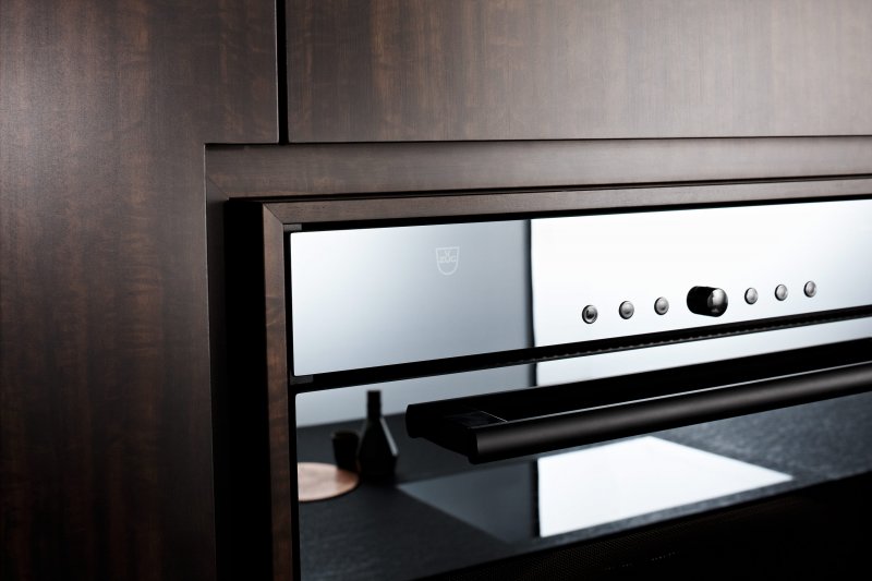 Die Geräte mit einem Rahmen eingefasst wodurch sich die umgebenen Schränke grifflos öffnen lassen
